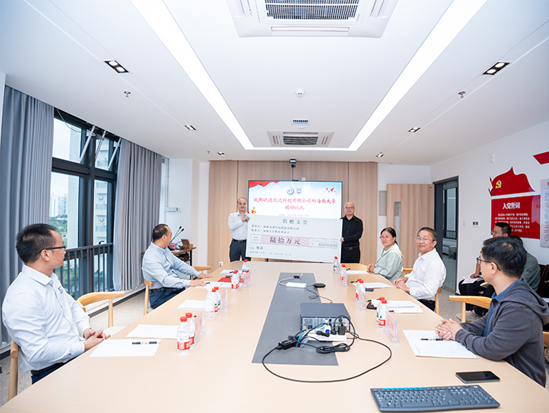 2025年10月23日下午,成都讯速信远科技有限公司向海南大学捐赠教育发展基金的仪式,于海南大学电子科学与技术学院会议室隆重举行。本次仪式以“深化校企协同,共促教育发展”为主题,成都讯速信远科技有限公司总经理孙华杰、副总经理彭勇出席,仪式由海南大学电子科学与技术学院院长刘马良、党委书记林华主持。此次捐赠不仅是物质层面的支持,更是校企双方在人才培养与科技创新领域开展深度合作的有力见证。通过共建实践基地、联合开展研发项目,企业将产业需求融入高校育人体系,助力学子在真实场景中锻炼本领。
