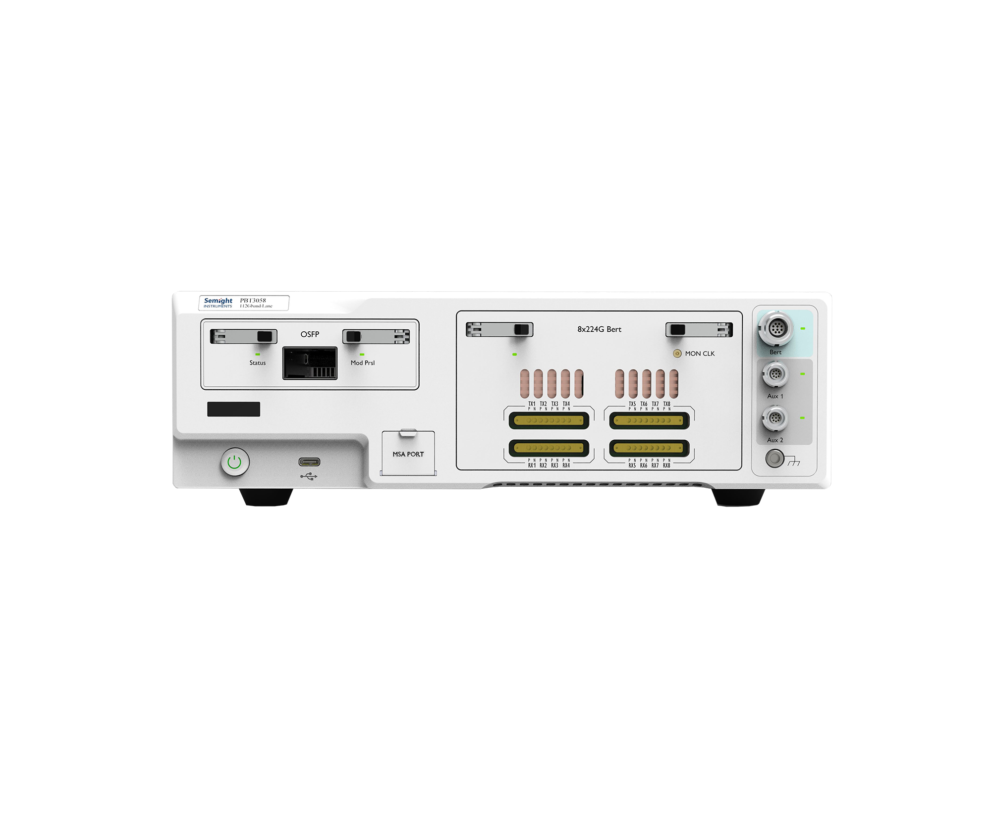 联讯仪器 PBT3058 是应用于高速串行信号误码测试的高性能比特误码分析仪(BERT),可用于物理层表征和一致性测试。凭借对四电平脉冲幅度调制(PAM4)和非归零(NRZ)信号的支持, 以及高达 106.25GBaud 的符号速率,覆盖了 1.6TBASE/CEI-224G 标准; 其优异的信号质量(上升/下降时间快、抖动低)、丰富的功能(支持 FEC 纠错码分析)、灵活的选件配置和超高的整机集成度,为高速串行电路产品预研、设计和生产测试提供了强大的性能和灵活性保障; 用户可自由选择不同的测试模式: 既可直接将待测件插入前面板的内置 MCB Kit 端口(更低的链路信号损耗且内置水冷散热), 也可通过外部射频探头将高速射频信号连接至待测件; 可编程码型发生器(PPG)能够提供至高21阶预加重调节器以及可选的非线性补偿功能,能够灵活补偿信号在传输过程中的损耗,改善信号质量。误码检测器(ED)内置了自适应均衡电路,无需外接有源或无源的信号调理电路即可保证链路的信号完整性,同时内置快速锁定的时钟恢复模块,保证了误码测试时链路的稳定性,以及在恶劣复杂的测试环境中误码测试的准确性。