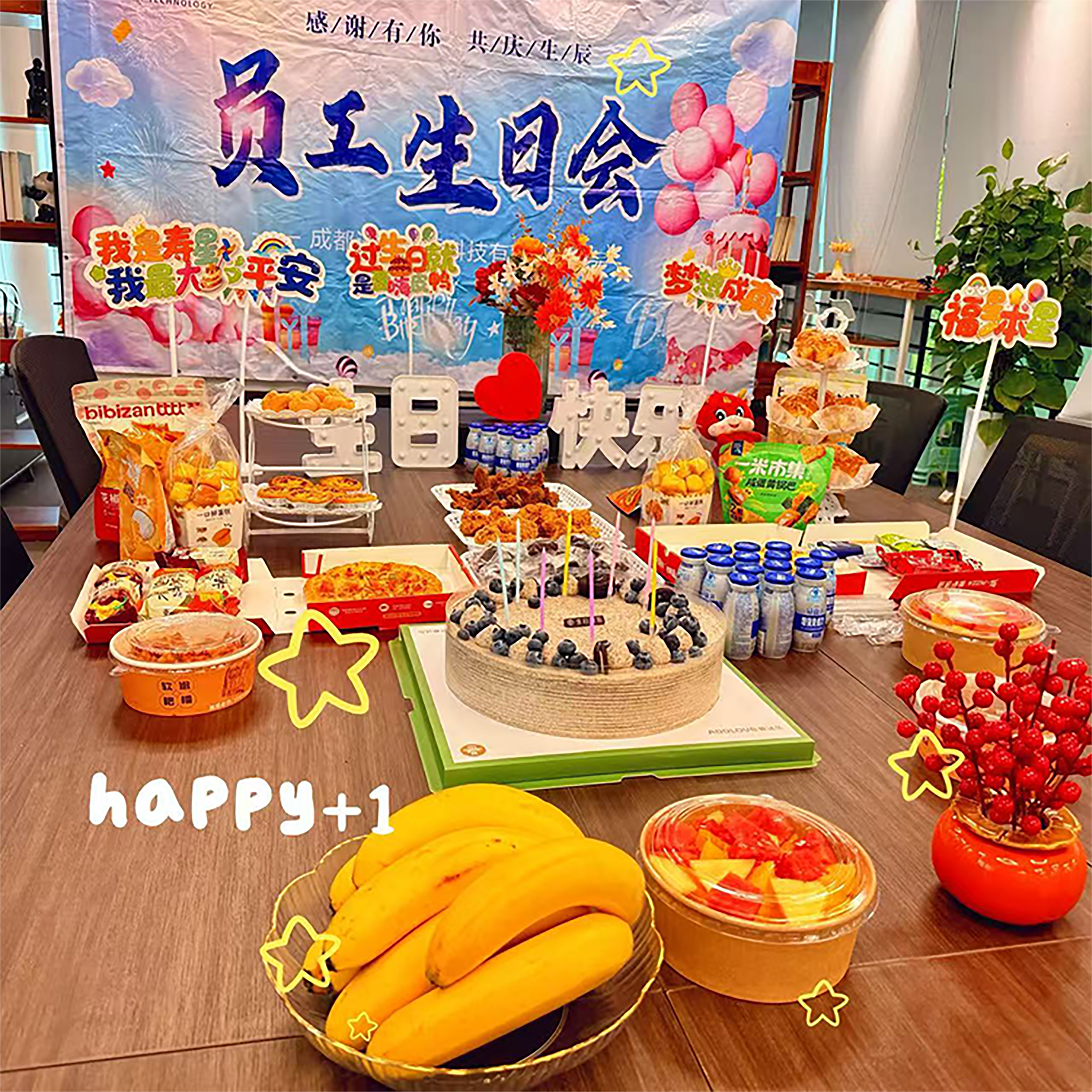 秋意融融的九月,讯速信远科技为寿星们准备了一场甜蜜的惊喜! 水果、零食、蛋糕、披萨、炸鸡欢笑声……会议室秒变“幸福派对”,寿星们戴上闪闪发光的生日帽,在全体同事的祝福中许下心愿。行政小姐姐精心准备的礼物更是让惊喜值拉满~ “新的一岁,愿大家眼里有光,脚下有路,生日快乐!” ——这是全体讯速人最朴素的祝福。 未来,我们继续温暖同行,一起闪闪发光!